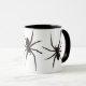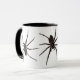 Diese einzigartige Tasse kennzeichnet Wolfspinnen, Rhabidosa rabida. Wolf-Spinnen sind große, haarige Spinnen und normalerweise gemustert mit einer Mischung von Schwarzem, von Grauem und Braun.