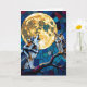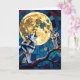 Geburtstagskarte kann man personalisieren. Eine lebendige bunt-ai-Illustration eines mosaikartigen Wolfs, einer Eule und eines Vollmonds in einem farbigen Glasflair. Eine wunderschöne Geburtstagskarte für diejenigen, die Liebe von Wildtieren.