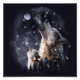 Wolf und Welpen heulen auf dem Mond Fotodruck
