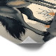 Wolf unter dem Mond - Ein majestätischer schwarzer Wolf steht auf einem robusten Felsbrocken, sein Blick richtet sich nach rechts. Das Wolfsfell ist in Grautönen und Schwarz gehalten, wodurch ein Gefühl von Tiefe und Realismus entsteht. Am Himmel hängt ein blass orangefarbener Mond, der ein weiches Licht auf die Szene wirft. Der Hintergrund ist in Beige gehalten, mit subtilen Wolkennoten, die das Ambiente angenehm beruhigen.
