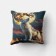 Ein majestätischer Wolf steht auf einem Felsvorsprung und heult auf einem hellen Vollmond, umgeben von feurigen Herbstblättern und abgelegenen Berggipfeln bei Dämmerung.