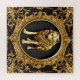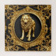 Ein auffallendes Bild mit einem schwarzen Wolf-Set gegen einen luxuriösen goldenen Zierrahmen, der ein Gefühl von Mystik und Power weckt. Der Kontrast zwischen dem glänzenden, goldenen Fell des Wolfs und den aufwändigen, eleganten Details des Rahmens schafft eine visuell faszinierende Komposition.