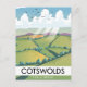 Wölfe für eine Pause. Ein schönes Vintages Reiseplakat mit einem Retro-Flugzeug, das über die Landschaft fliegt.
