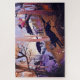 Ein junges Mädchen mit dunklem Haar in einem roten Mantel eilt durch einen dunklen Herbstwald, der auf dem Rücken eines schwarzen Wolfs in einem Rudel mit anderen Wölfen in Richtung eines kleinen mysteriösen Dorfes am Horizont reitet. Ein wenig eine düstere und schattige Illustration. Ein wunderbares Rätsel für die ganze Familie, einen Abend mit Lieben zu verbringen.