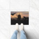 Zwei Wölfe und ein fliegender Rabe auf einer silbernen Landschaft und einem Wolkenuntergang.
