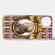 Das Originalwerk von ZoeSPEAK auf diesem iPhone 13 Case zeigt ein Portrait des klassischen Musikkomponisten Wolfgang Amadeus Mozart. Das Portrait ist ein Profil Set in einem verzierten ovalen goldenen Rahmen. Der Rahmen hängt auf einem lila Hintergrund mit goldenen Traubenbäumen in Reihen und senkrechten Streifen aus Weiß und Lavendel.