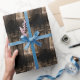 Wolf oder timberwolf, Gesichts-Foto überlagerten auf ein Foto eines Waldlandes mit den Strahlen des Sonnenscheins durch filternd für ein einzigartiges Verpackungspapier