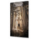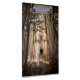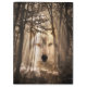 Wolf oder timberwolf, das Gesichts-Foto, das auf ein WaldFoto mit Sonne gelegt wird, rays, um ein einzigartiges und unmissverständlich Ihr zu schaffen Klippbrett