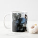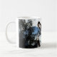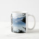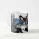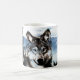 Wolf oder timberwolf, Gesicht überlagerten auf einen schneebedeckten Gebirgshintergrund mit Bereichen des Hintergrundes, der durch irgendeine Transparenz in den einzigartigen Tierliebhabern Tasse oder Schale des Wolfgesichtes zeigt
