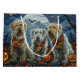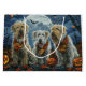 Entfesseln Sie den unheimlichen Geist mit diesem unheimlichen Halloween-Design, das eine Hundepackung unter einem dunklen, mondbeleuchteten Himmel bietet, umgeben von fliegenden Fledermäusen und glühenden Kürbissen. Ideal für diejenigen, die mit ihren wütenden Freunden eine Touch voller Furcht Liebe haben!