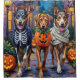 Adorable irische Wolfhounds, die in verspielten Halloween-Kostümen gekleidet sind, tragen Kürbiseimer, während sie unter dem mondbeleuchteten Himmel tricksen oder behandeln. Dieses festliche Design hebt die hohe, wirbelige Rasse, sanfte Augen und edle Persönlichkeit hervor, die die sprichwörtliche und dennoch lustige Atmosphäre Halloween-Abends perfekt einfängt. Ein majestätisches Fest für Hundefreunde und Halloween-Fans gleichermaßen.