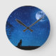 Heulenwolf gegen Hintergrund des Mond- und Sternhimmels.