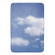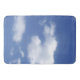 Weiße flauschige Wolken sind über einen strahlend blauen Himmel verstreut. Das Bild vermittelt ein Gefühl von Frieden und Offenheit.