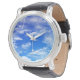 Uhr, Klassische Damenuhr mit schwarzen Lederarmband