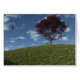 Eine friedliche 3D-Landschaft im Frühling oder Sommer, geschaffen in Vue. Auf einem Hügel mit grünem Gras und farbenfrohen Primaten, an einem blauen Himmel mit Wolkenbrüchen steht ein einsamer, roter japanischer Ahorn mit einer Holzbank, um zu stoppen und Erholung zu genießen. Ein einsamer Adler schwingt beim Wind vorbei.