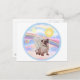 Ein Mops Engel schwimmt in den pastellfarbenen Wolken des Himmels.