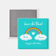 Ankündigen Sie Ihre Hochzeit mit diesem anpassbaren Save the Date Magnet mit niedlicher und farbenfroher Abbildung von Wolken und Regenbogen. Personalisieren Sie es mit den Namen der Braut und des Bräutigams und fügen Sie Ihr eigenes Hochzeitstermin und Ihre Informationen hinzu. Sie können auch die Schriftart- und Hintergrundfarbe ändern.