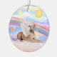 Ein berühmter Greyhound-Engel schwimmt in den flauschigen Wolken des Himmels und strahlt Sonne, Stern und Mond in der Ferne aus