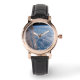 Uhr, Klassische Damenuhr mit schwarzen Lederarmband