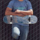 Wolkenkratzer- und Korallenmeere. Skateboard
