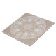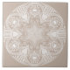 Diese weiße Mandala sitzt auf einem hellbraunen oder tan Hintergrund. Die Farbe ist weich und natürlich. In etwas Lichtern kann sie wie ein warmes Grau aussehen. Teil der Howlsplann Mandala-Sammlung.