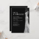 Celebrate a milestone in style with this luxurious 50th birthday invitation featuring a stunning silver evening gown on a black background, paired with the bold statement “Fifty & Fabulous.” The back design completes the look with silver high heels and the playful phrase “Let’s Party,” making this invitation perfect for a chic, glamorous celebration.