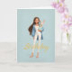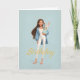Woman in Blue & White w/ Cute Bunny Bday Karte