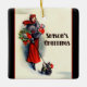 Woman in red coat shopping with Scottish Terrier Ceramic Ornament. Victorian and retro images properly licensed.