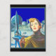 Vintage Science Fiction, die eine Rakete darstellt, die auf einem anderen Planeten gelandet ist, und mehrere Menschen, darunter eine hübsche Frau.