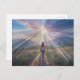 Woman Walking Toward Glowing Cross – Faith Journey Postkarte