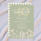 Celebrate in style with this elegant 40th Surprise Birthday Party Invitation, designed to keep the big day a secret until the very last moment. The design features the words “Shhh, it’s a Surprise” in a graceful script font, with “party” beneath and a shimmering golden “40” glowing softly in the background. A delicate border of watercolor white wildflowers and green leaves frames the bottom, all set against a soft green background for a refined, timeless look. The party details are displayed in a crisp white serif font, ensuring easy readability and sophistication. Perfect for family members, this invitation allows every detail—name, date, address, and RSVP—to be customized with ease.