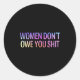Women Don't Owe You Feminist Social Equality Runder Aufkleber