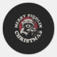 Womens Bluegr Holiday Raccoon Merry Fidding Christ Runder Aufkleber