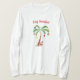 Frauenlangärmeliges Shirt in Weiß mit einem festlichen Urlaubspalmenprint mit Feliz Navidad Text. Ideal für den Urlaub. Passen Sie dieses Objekt an oder kaufen Sie, wie es ist.
