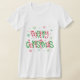 Der T - Shirt für den Frauenurlaub wird in Weiß mit einem festlichen Weihnachtsdruck gezeigt. Passen Sie dieses Shirt an oder kaufen Sie, wie es ist.