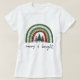 Spread some holiday cheer with this stylish and comfortable Women's Basic T-Shirt! The eye-catching graphic features a modern rainbow design incorporating classic Christmas elements like plaid patterns, stars, and rows of festive Christmas trees in green, white, and red. The cheerful message underneath reads: "merry & bright". This clean, white tee is perfect for women who love trendy holiday apparel, as a festive top for family photos, or a unique alternative to the traditional ugly Christmas sweater.