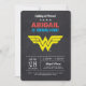 Feiern Sie den Geburtstag des Superhelden Ihres Kindes mit diesen Einladungen zum Geburtstag von Wonder Woman. Personalisieren Sie das Party durch Hinzufügen Ihrer Daten!