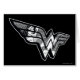 Das klassische Wonder Woman Logo in einer gezinkten 3D-Grafik, gefüllt mit Spitzen und Retro-Charakter Kunst von Wonder Woman.