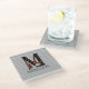 Whimsical Wonderland themed glass Untersetzer bietet Vintage Alice und die Königin of Hearts Zeichenfarbabbildungen mit großen Buchstaben / Initial M mit einem Schwarz/Gold/Rot Kartensuiten Füllmuster auf einem Vintagen grauen harlequin Hintergrund. Weitere Personalisierung mit benutzerdefinierbarem Namenstext