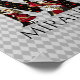 Whimsical Wonderland themed wall Art zeigt Vintage Alice und die Queen of Hearts Zeichensatzabbildungen mit großen Buchstaben / Initial M mit einer Schwarz/Gold/Rot Karte Suiten füllen Muster auf einem Vintagen grauen harlequin Hintergrund. Weitere Personalisierung mit benutzerdefinierbarem Namenstext