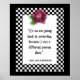 Whimsical digital art verfügt über einen schwarz-weißen Rahmen an der Tafel, lila Aquarellfarben-Blume oben und in der Mitte, Zitat aus der Alice im Wunderland, die lautet: "Es hat keinen Sinn, bis gestern zurückzugehen, weil ich damals eine andere Person war."