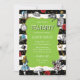 Alice im Wunderland themed Tea Party Un Birthday Einladung, mit dem Mad Hatter, Cheshire Cat, Alice und das Kaninchen. Passen Sie den Text für Ihren ganz besonderen Tag an. Hier in Kalkgrün mit schwarz-weißen Streifen dargestellt. Dieses Design ist in anderen Farben und Hintergründen erhältlich.