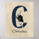 Whimsical Design für Alice im Wunderland Liebhaber aller Altersgruppen bietet Hauptstadt Buchstaben / Initial C mit schwarz-blau Harlequin Füllung und Original White Rabbit Illustration, die getönt wurde, auf einem Imitat Holzpaneel Hintergrund. Personalisieren mit Namen oder anderen Nachrichten