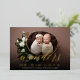 Die elegante Urlaubsankündigung für Zwillinge beinhaltet ein Single voll bluten horizontalen oder landschaftsorientierten Foto mit "Wunder seiner Liebe" überlagert in luxuriösen Goldfolienskripten und Blockschrift. Personalisieren Sie die Babynamen oder eine benutzerdefinierte Nachricht unten. Karten kehren mit den Geburtsdaten Ihrer Zwillinge und zusätzlichen Informationen zu einem botanischen gemusterten Hintergrund zurück. Eine schöne Wahl, um die Ankunft Ihrer Weihnachtszeit Zwillingsbabys zu feiern.
