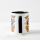 Fun cartoon illustration of a cheerful coffee cup with a duck face, surrounded by splashing coffee and bold orange text celebrating coffee time.
