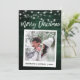 Modernes Pinselskript, Sofortkamera Foto Frohe Weihnachtskarte - Rustikales Grünes Holz