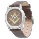 Stilvolle goldene Quadrat und Kompass Masonic Symbol personalisierte Uhr mit einem Imitat Holzuhr Gesicht.