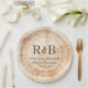 Fügen Sie Ihrem rustikalen Event eine einzigartige und personalisierte Touch hinzu, ob es sich um eine Verlobungsfeier, Hochzeitsankündigung oder Brautparty handelt, mit diesen maßgeschneiderten Tellern aus Monogramm Papier. Personalisieren Sie die Teller, indem Sie Datum, Namen und Initialen anpassen, um ein sofortiges Monogramm-Design zu erstellen. Die Teller sind rustikal und naturschön, mit einem Holzkorn und Baumrindenringen bedruckt. Dieses Design verleiht Ihrer Veranstaltungsdekoration eine Touch von Wärme und Charme, die das rustikale Thema perfekt ergänzt. Durch Hinzufügen von Datum, Namen und Initialen erstellen Sie ein personalisiertes Monogramm, das das Paar und seinen besondere Anlass darstellt. Es ist eine wunderschöne Art, ihre einzigartige Identität zu zeigen und ihre Liebe zu feiern. Diese Teller bieten sowohl Funktionalität als auch Stil und ermöglichen es Ihnen, Ihre Gäste mit Leichtigkeit zu bedienen und gleichzeitig ein rustikales und personalisiertes Element zum Speisen hinzuzufügen. Sie sind ideal für Hochzeiten im Freien, für rustikale Empfänge oder für alle Veranstaltungen, die eine natürliche und charmante Atmosphäre vereinen. Machen Sie Ihre Veranstaltung mit diesen benutzerdefinierten Tellern für Monogramm-Papiere unvergesslich. Sie dienen nicht nur dem praktischen Zweck, sondern fügen auch Ihrer Feier eine persönliche und rustikale Touch hinzu. Ihre Gäste werden die Liebe zum Detail und die Sorgfalt, die hinter diesen einzigartigen Tellern auf Papier steckt, schätzen.
