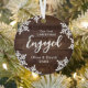 Personalisierte verlobte Weihnachtsschmuck mit elegantem, trendigem Drehbuch und Schneeflocken auf rustikalem Holzboden, optionales Foto auf der Rückseite, modern und einfach.