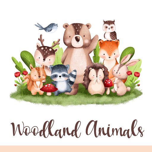 Niedliche Waldtiere in Aquarelltönen, die sich zum Thema "Gefälligkeitsbox" mit weißem Hintergrund und Blattwerk eignen.